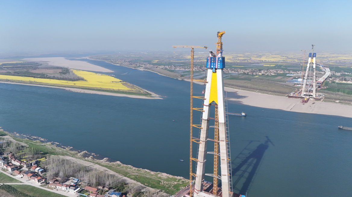 湖南路橋在這兩個關(guān)鍵領(lǐng)域持續(xù)發(fā)力,在觀音寺長江大橋施工現(xiàn)場,262米高的索塔巍然屹立于荊江大堤之側(cè),一段段超寬大截面預(yù)應(yīng)力混凝土箱梁正從自行設(shè)計的高臺支架預(yù)制后移運至安裝位置,在智能牽引移梁及智能定位技術(shù)加持下,重達1600t的梁段正在實現(xiàn)毫米級定位拼裝。這座世界級第一大跨徑公路斜拉橋,在深水基礎(chǔ)施工突破150米“禁區(qū)”后,進一步以1160m超大跨徑鋼-UHPC組合梁結(jié)構(gòu)挑戰(zhàn)橋梁建造極限,是湖南路橋深耕“深水基礎(chǔ)與大跨徑橋梁”領(lǐng)域的縮影。